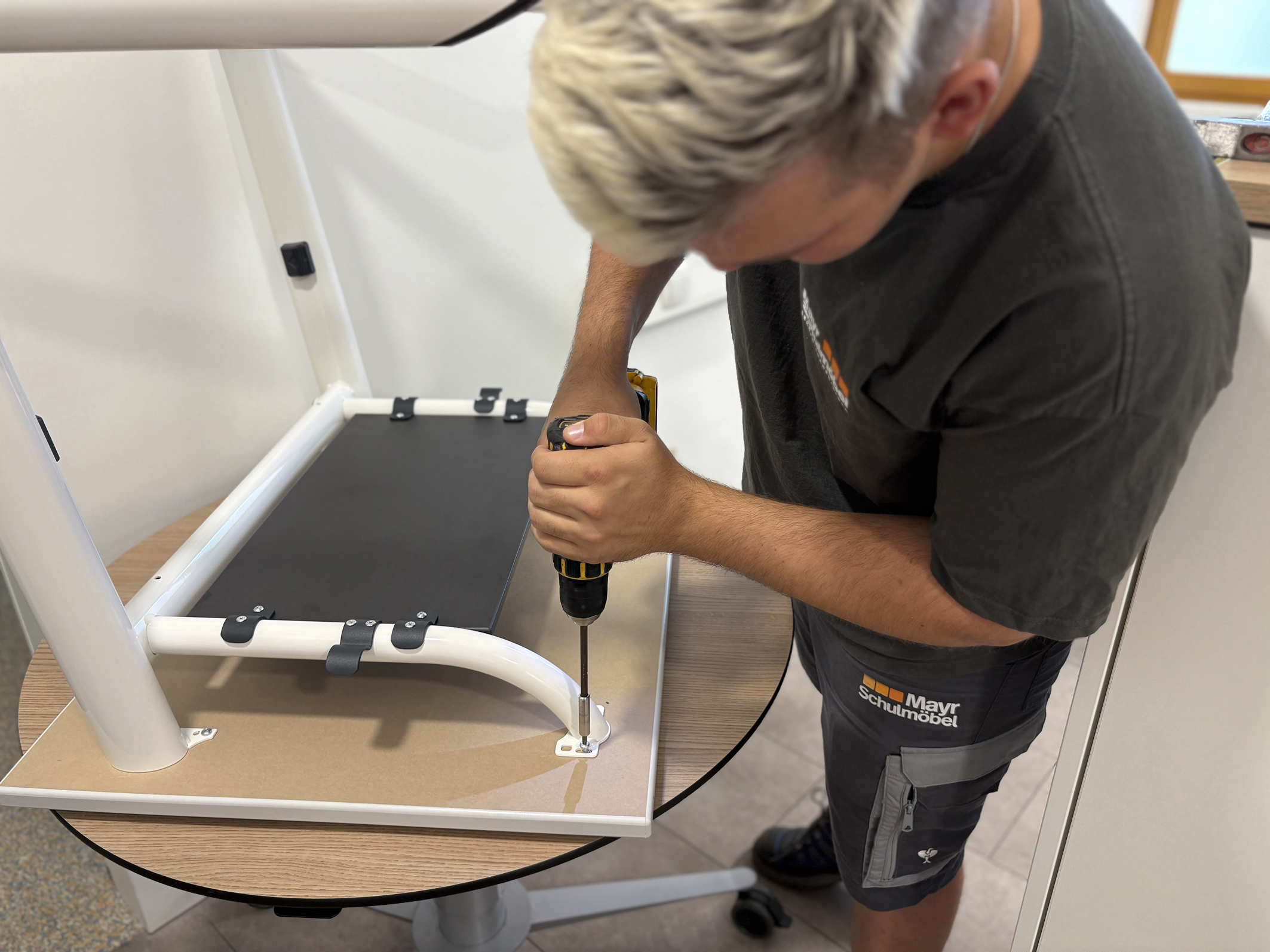 Scharnstein, 11. November 2025 – Bisher konnten Kunden die Ersatzteile nachbestellen und selbst montieren. Ab dem Frühjahr 2026 bietet Mayr Schulmöbel einen zusätzlichen, neuen Service an – den Reparaturservice, bei dem Mitarbeitende vor Ort Reparaturarbeiten vornehmen. „Auf diese Weise unterstützt unser Unternehmen Bildungseinrichtungen, wenn dort die Zeit für Kleinreparaturen fehlt“, sagt Franz Josef Wiener. Die Reparaturfahrten werden außerhalb der Sommermonate, der Hochsaison bei Mayr Schulmöbel, stattfinden – wenn nicht jede unterstützende Hand im Unternehmen benötigt wird. Bei Bedarf können die Monteure ab sofort angefordert werden.