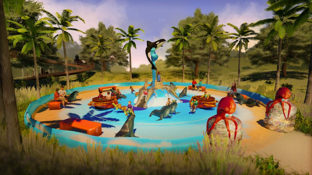 Ob nun ein idyllisches Dorf, eine geschäftige Baustelle oder eine Dschungelszene voller exotischer Tiere – Spin n‘ Play ist frei gestaltbar. Die rund zehn Meter im Durchmesser große Spielplattform kann mit zehn individuell designten Elementen für vier Personen bestückt werden. Die Sitze werden jeder Konfiguration in Form und Design angepasst und in allen Standardvarianten von Spin n‘ Play ist der Spaß garantiert. Gegen einen Aufpreis kann zusätzlich das „Ruhe und Erholungs-Element“ in der Form von rund um die Spielplattform drapierten Sitzgelegenheiten erworben werden. Auf diesen frei gestaltbaren Bänken können die Großen gemütlich entspannen, während ihre Kleinen auf der Anlage herumtollen. „Spin n‘ Play ist die ideale Ergänzung in jedem Freizeitpark. Wir freuen uns, dass wir im Frühsommer mit dieser neuen Attraktion auf den Markt gehen können“, sagt Weichselgartner.