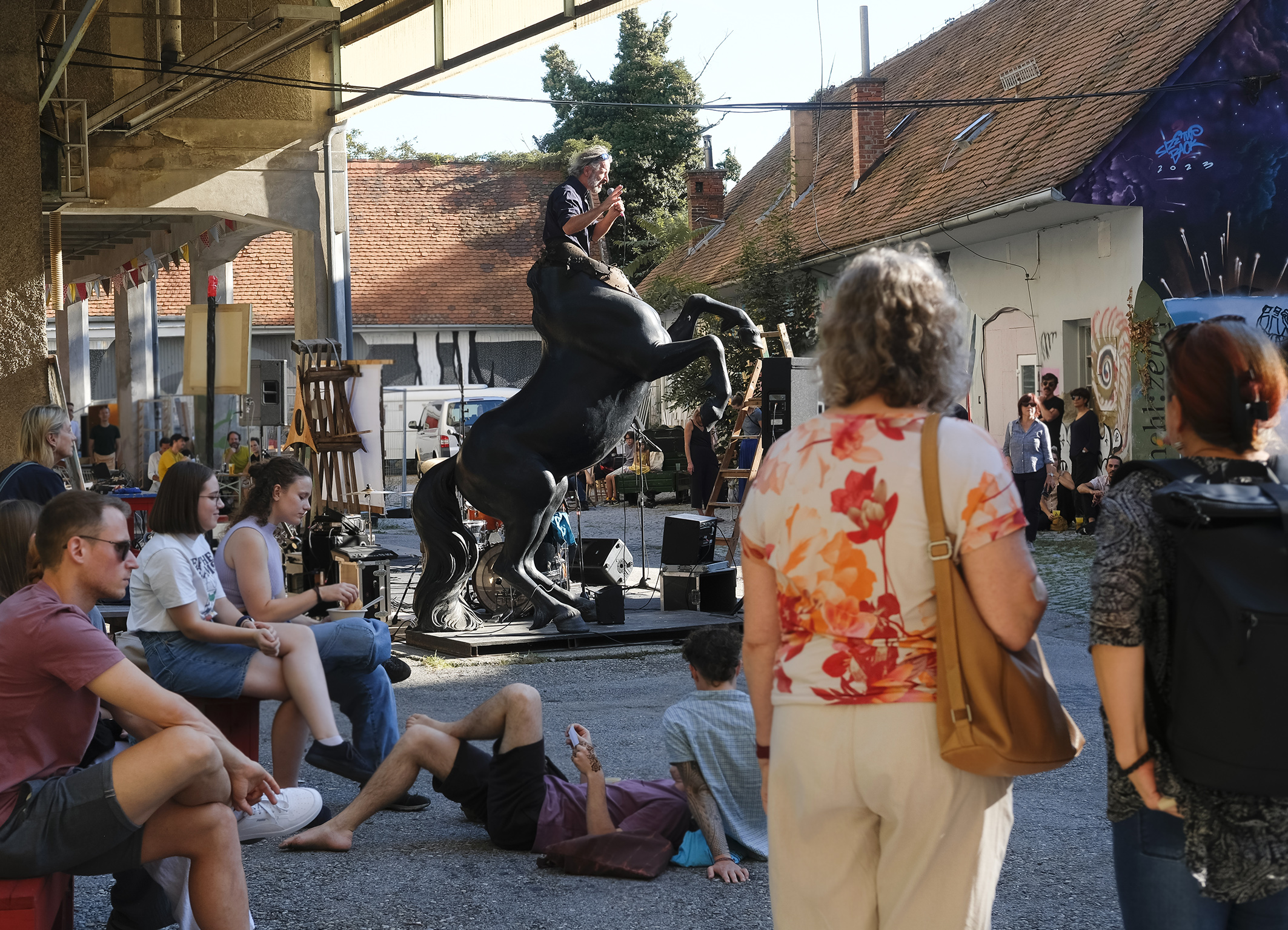 Graz, 28. Oktober 2025 – Internationale Künstler bespielten während des Steirischen Herbstes das Areal Rösselmühle an der Postgarage. Das Publikum erlebte zwischen 19. September und 12. Oktober Konzerte und Performances, entdeckte Kunst in der Gruppenausstellung im Mühlengebäude und am Werkhof. Das Areal Rösslmühle an der Postgarage war damit bereits zum zweiten Mal Schauplatz des Kunstfestivals. „Architektinnen und Künstler sind das ganze Jahr vor Ort und nutzen die Rösselmühle als Atelier, Kunst- und Denkraum. Die prekARTe ist fast wie ein kultureller Höhepunkt des Jahres“, sagt Leinich. „Es ist schön zu sehen, wie der Ort dadurch gestaltet und entwickelt wird.“ Mit der circulART Materialhalle hat sich eine Initiative zur Förderung von Kreislaufwirtschaft im Kunst- und Kulturbereich in der Rösselmühle etabliert. Sie vermittelt Ausstellungsaufbauten, Bühnenbilder oder Requisiten zu günstigen Konditionen, um Ressourcen zu schonen.