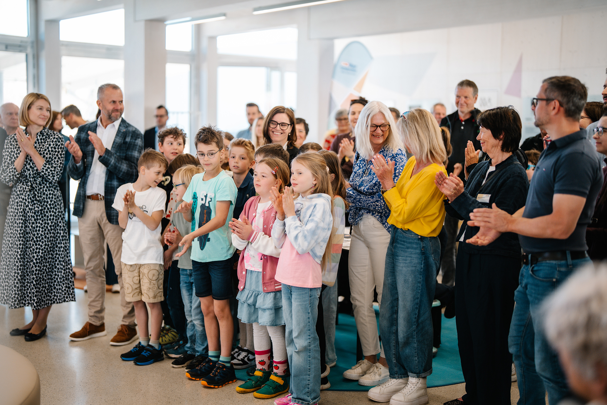 Am Samstag, 25. April 2026, lud Mayr Schulmöbel zu einem Tag der offenen Tür ein. Hunderte Wissbegierige besichtigten das neuen Campus Büro und bestaunten im Atrium das neue Kunstwerk, das der Verein ARTgenossen – Verein für Kulturvermittlung aus Salzburg aus Zeichnungen und Bastelarbeiten der Volksschulkinder Mühldorf angefertigt hat. Besucherinnen beneideten die Mitarbeitenden von Mayr Schulmöbel um den großzügig angelegten Garten mit Biene-Mayr-Stock, Hochbeeten und Wildgehölzen. Dieser Garten wird für kreative Pausen und zum Krafttanken genutzt. In den Produktionshallen erfuhren Interessierte Wissenswertes rund um die Herstellung von Schulmöbeln. „Im Jahr werden 40.000 Tische und 93.000 Sessel für Schulen angefertigt. Bildungseinrichtungen in 25 Ländern auf vier Kontinenten setzen auf unsere Produkte“, kommuniziert Ing. Florian Huemer.